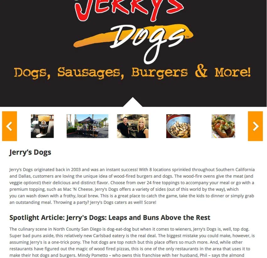 Web copy written on Jerry's Dogs for ItsEncinitas.com
